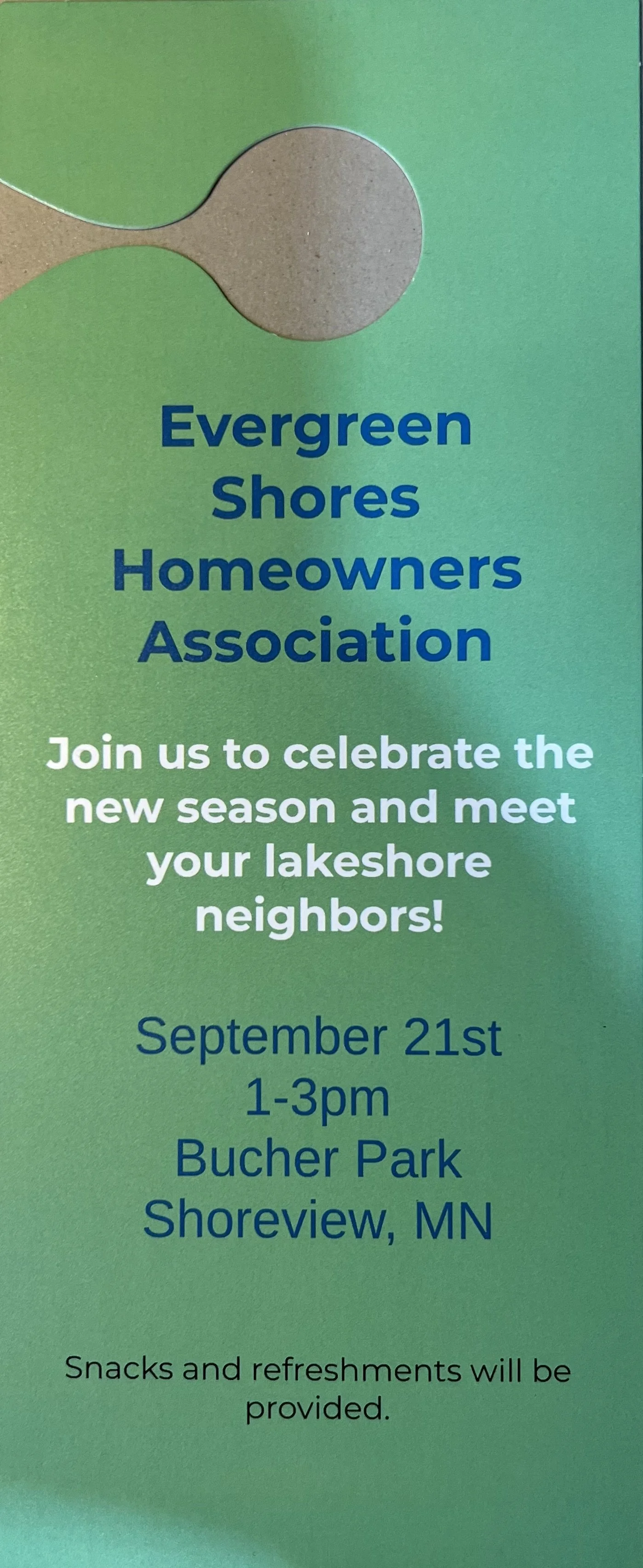 You may have notice (or will notice over the next couple of days) a door hanger on your door. We would like to invite the neighborhood over to Bucher Park on Saturday September 21st from 1pm-3pm for a meet and greet of your neighbors and board members.